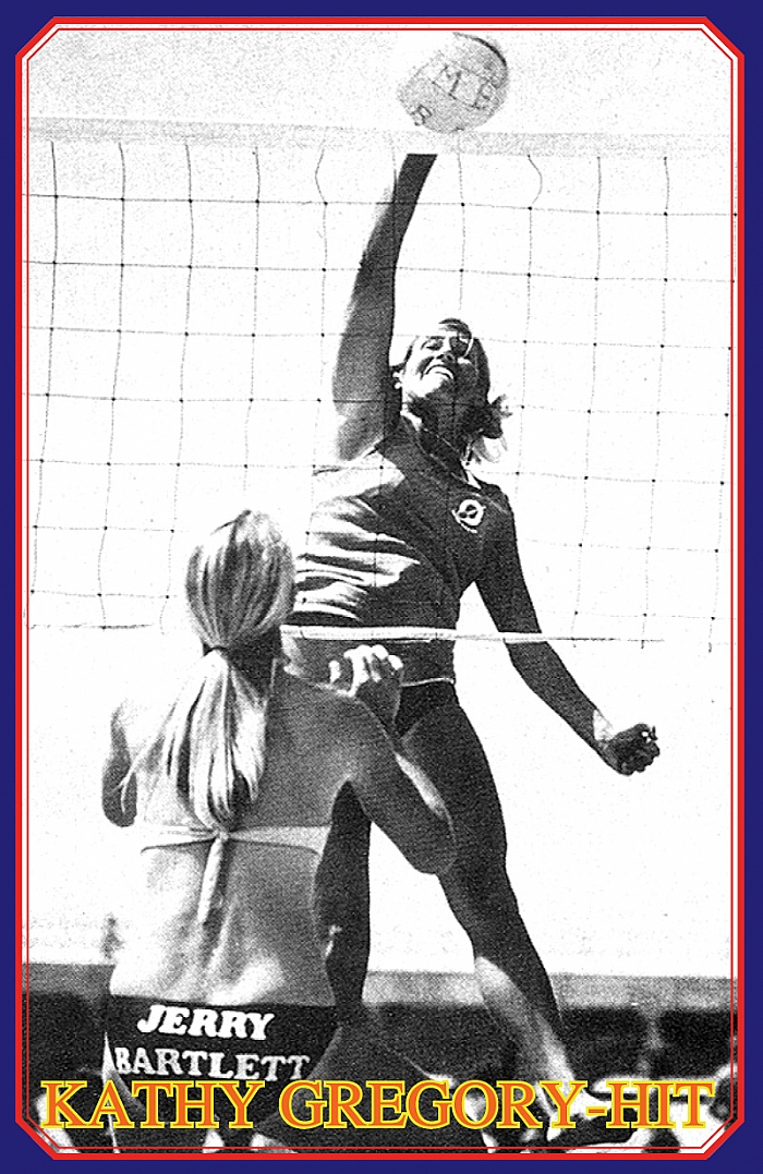 In the 1970s, Kathy Gregory was leading in the finals of a mixed four-person tournament playing along-side the legendary and intimidating Wilt Chamberlain. Wilt was making errors. Gregory, with a voice that redefined "within earshot," told him loudly to "pick up his play." People driving on Pacific Coast Highway probably heard the verbal undressing Gregory unleashed and there's no doubt all 7' 2" of Wilt took exception to the criticism. But Kathy Gregory was not about to back down. She never backed down. She was, and is, a walking, talking, fire-breathing embodiment of volleyball passion.